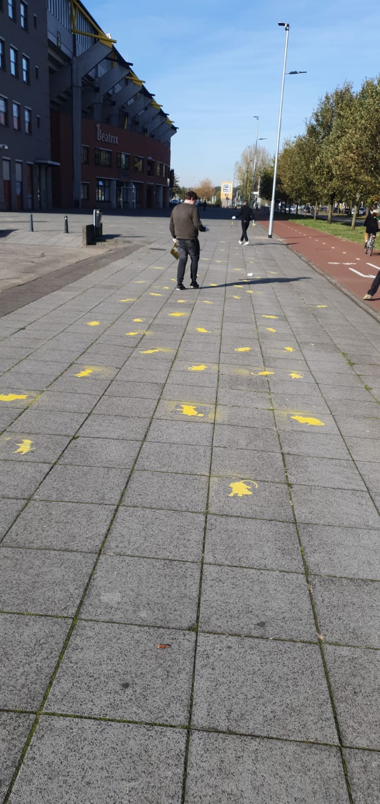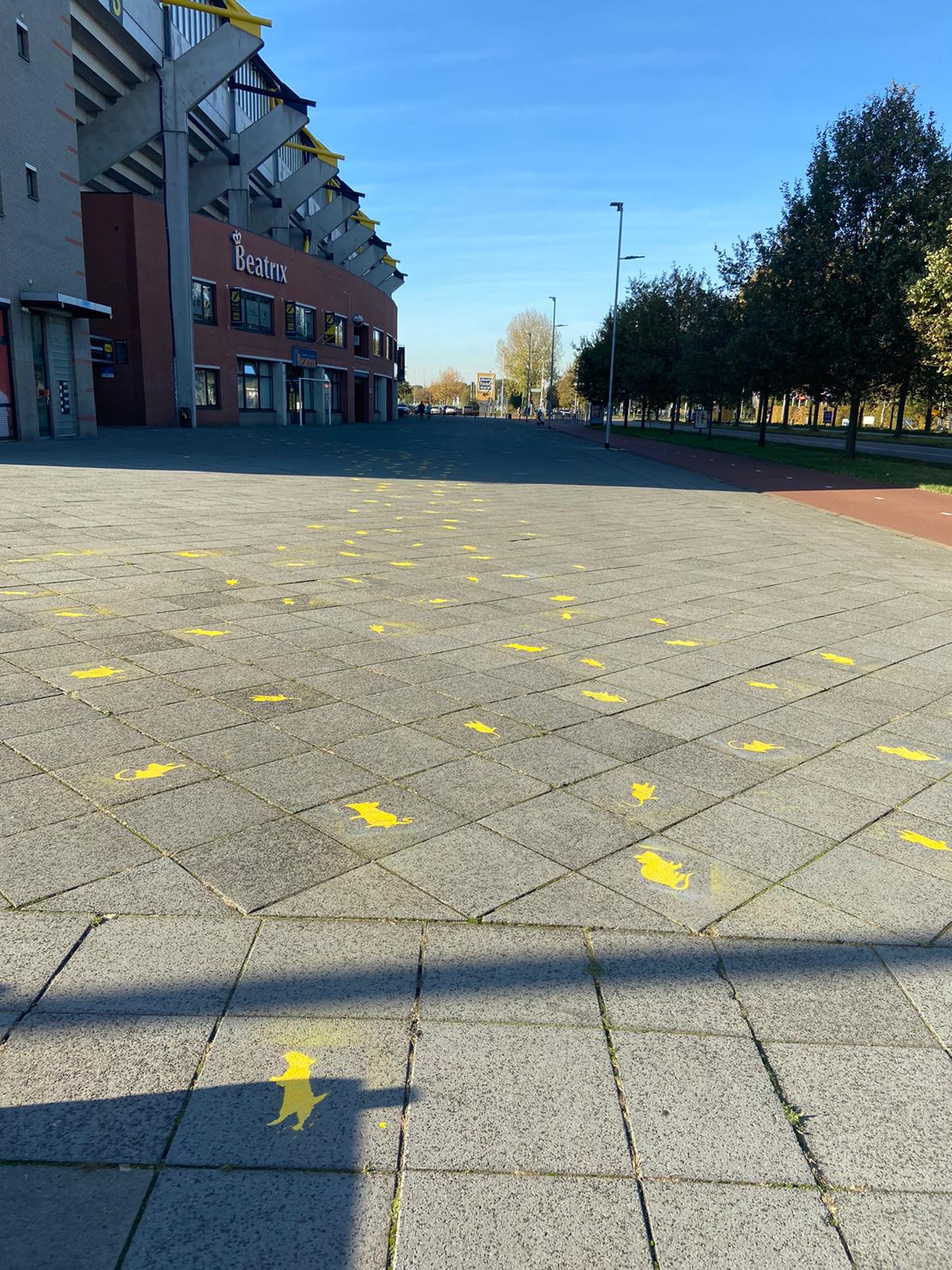 Bij het stadion zijn ze vandaag weer druk bezig geweest met het maken van de zogenoemde ´last mile´. Vlak voor het stadion zijn er diverse ratten gespoten op de tegels naast P5.