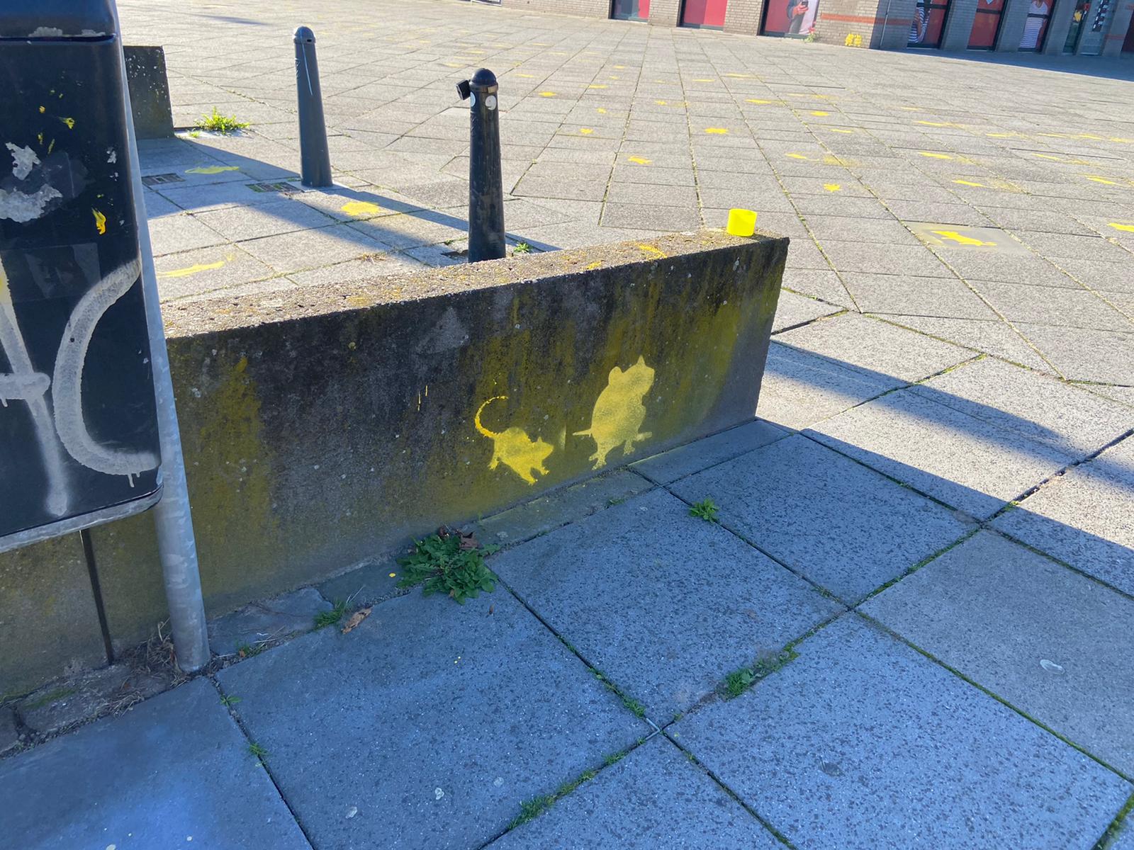 Ff Googlen op “Banksy Rats” had beetje inspiratie gegeven. Idee is best leuk, maar dan moet je echt veel verschillende sjablonen maken.